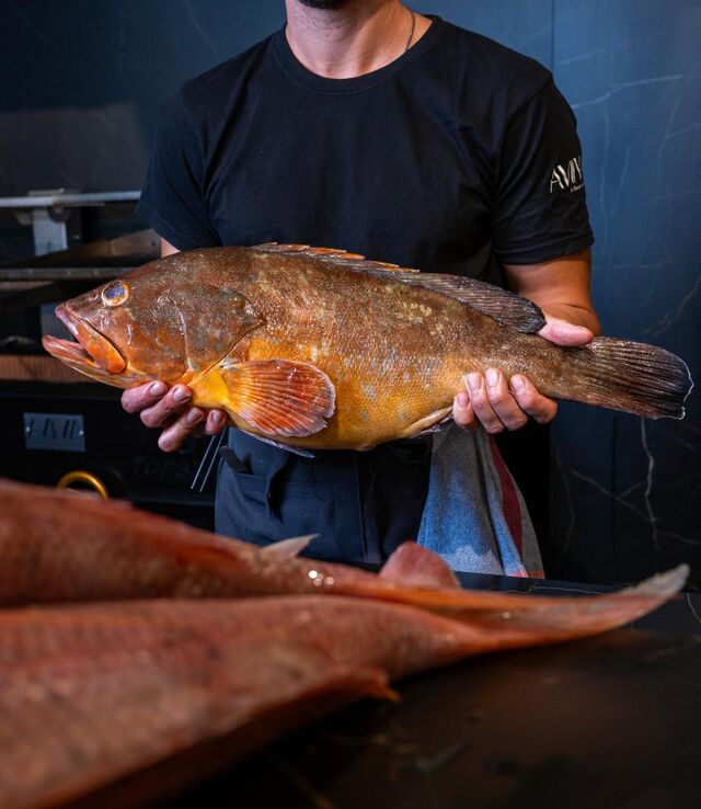 En **Aviva**, su proyecto más personal en Benalmádena, Juanjo ofrece una propuesta culinaria basada en las brasas, donde carnes, pescados, mariscos y hortalizas se combinan en un espacio acogedor y elegante.